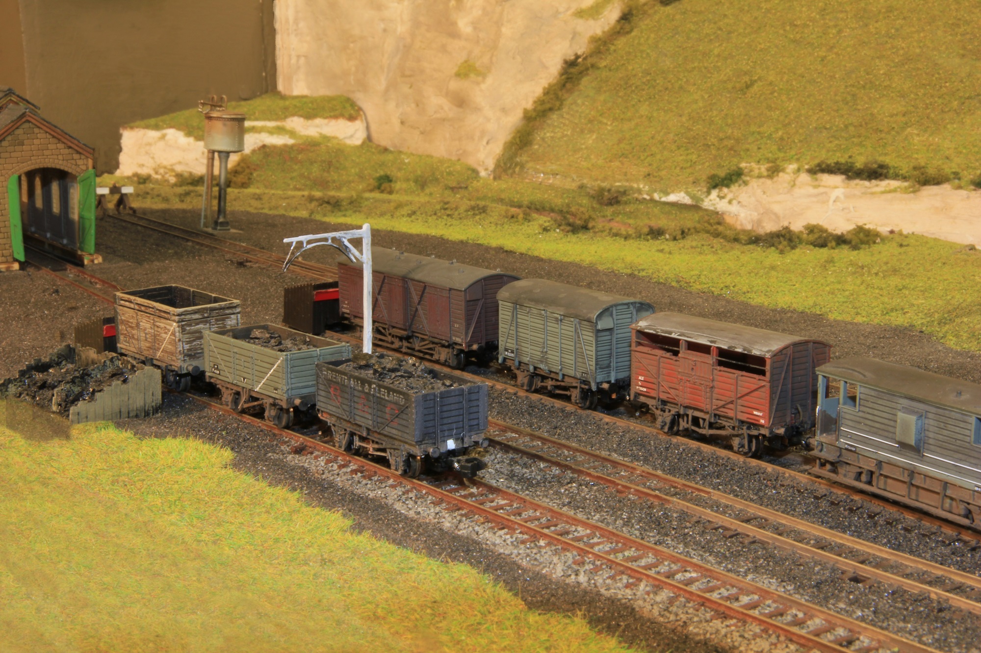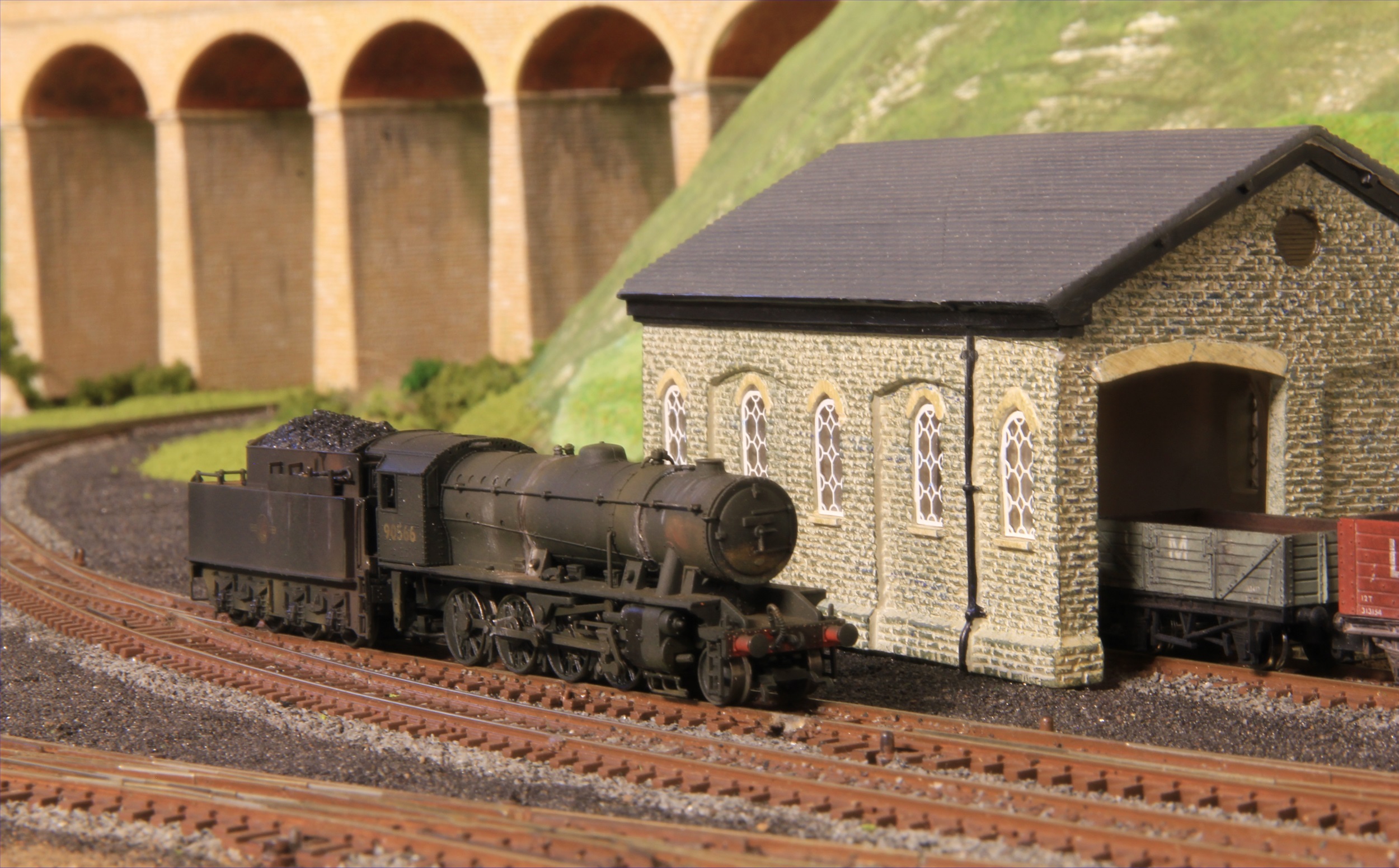 To add operational and visual interest, a fictitious local branch line has been added to the valley floor where the local station and goods yard provided a link through the hills to the nearby town.