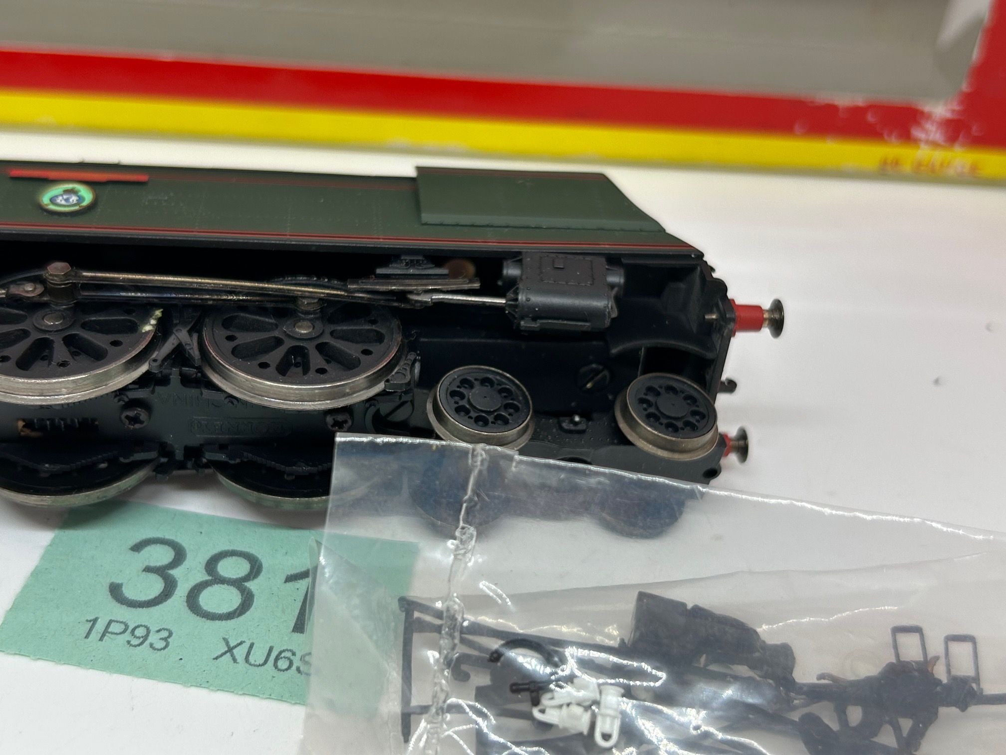 Looks like the loco has been dropped, with body damage at the from and the coupling rods are bent so it doen;t run. Both look fixable, But sold as spares / repair accoridngly. Boxed.