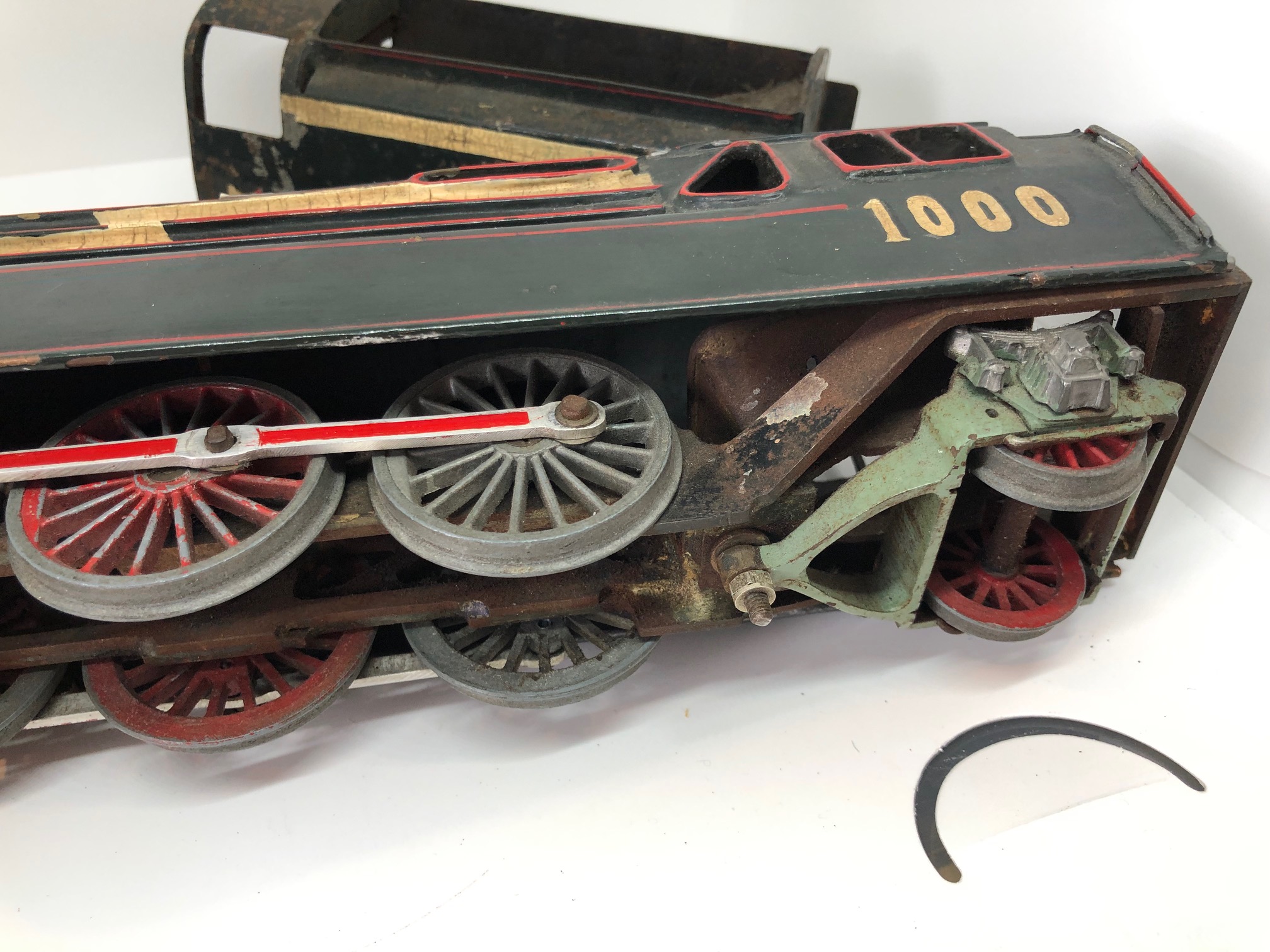 We don?t know the history of this model, but we think it is freelance continental style steamlined pacific. Buit for 3 rail operation – ie the wheels are not insulated. Please check photos carefully for condition.
